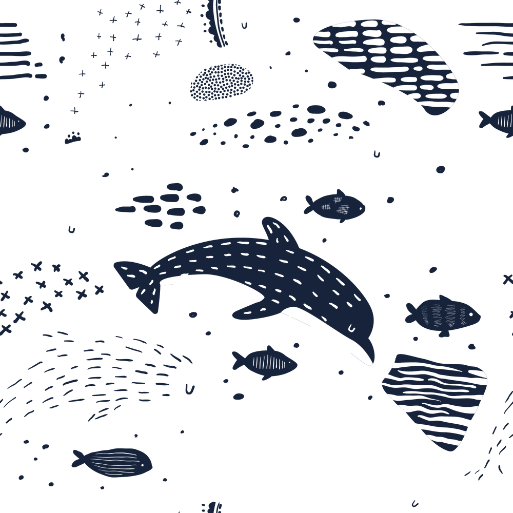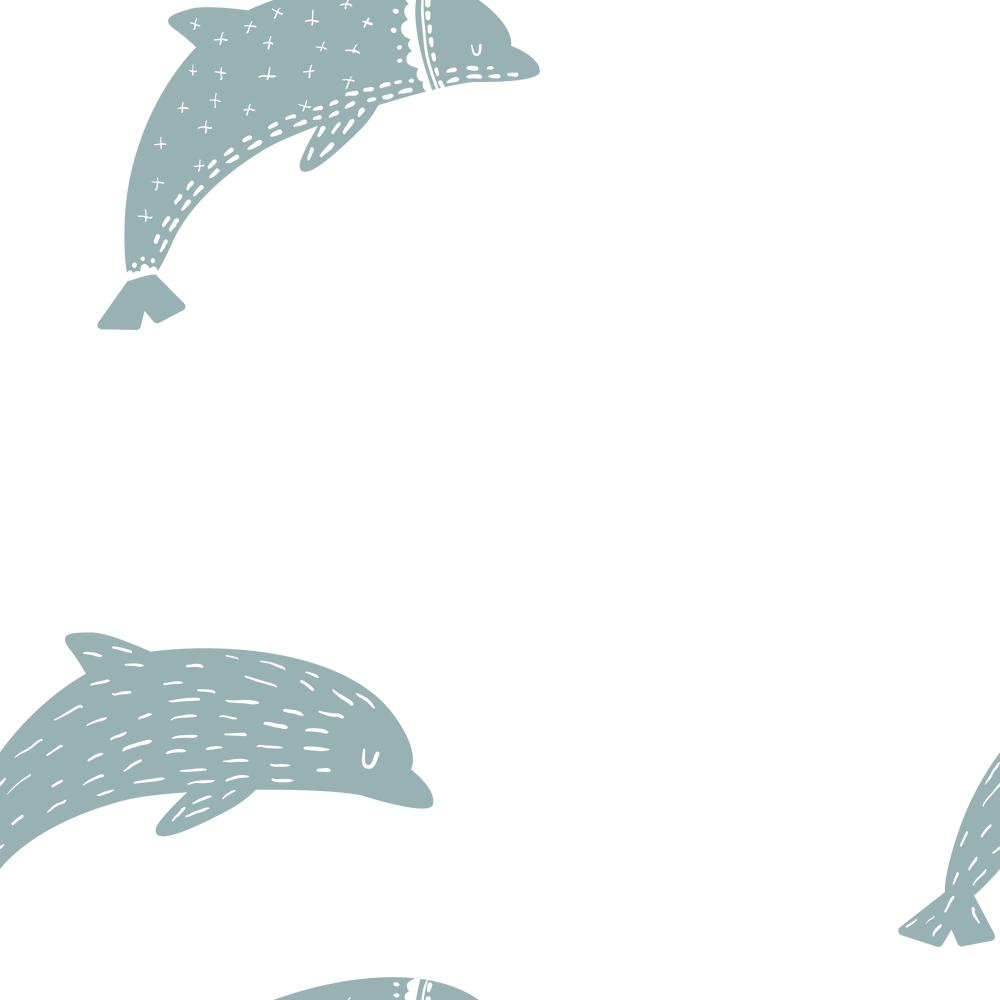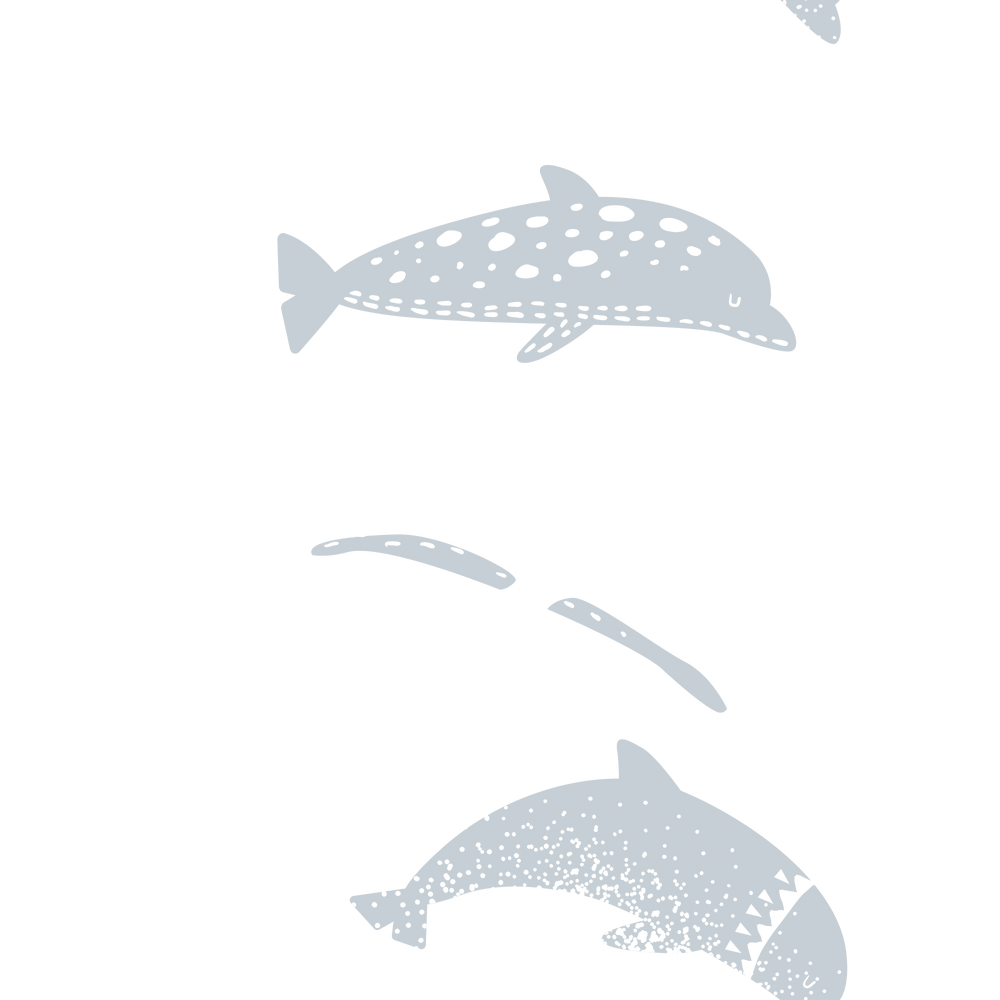 The “Delphine” wallpaper showcases playful dolphins and fish swimming gracefully across a white background, featuring a palette of soothing blue and gray tones. This charming underwater scene evokes a sense of calm, making it perfect for nurseries or children’s rooms. The aquatic theme blends nautical and oceanic elements with whimsical details. Every color, from the dolphins to the fish, can be fully customized, allowing you to tailor the wallpaper to match any decor or personal aesthetic.