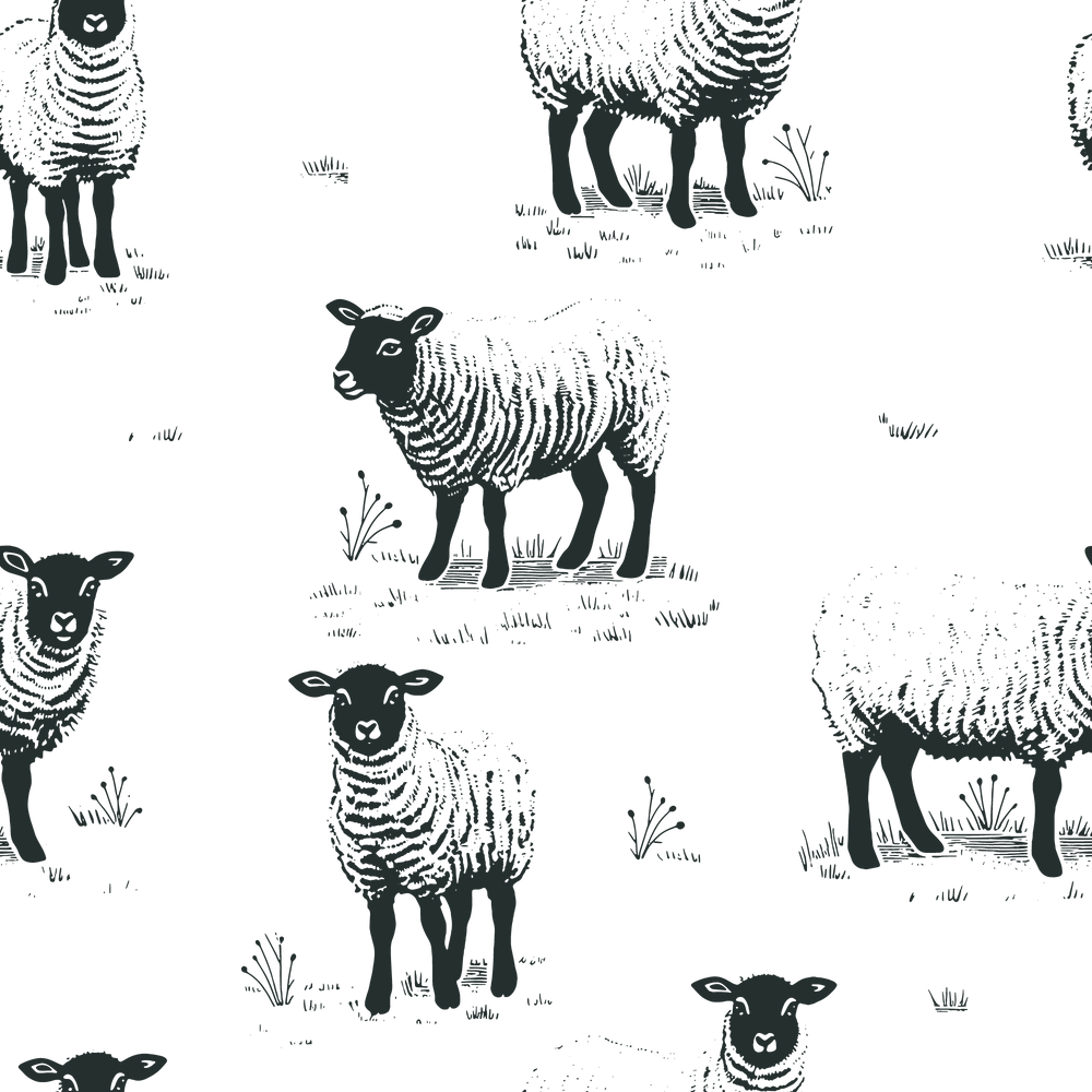 Hand Drawn Sheep In a Field Wallpaper