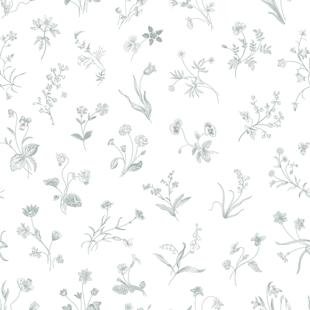 Escape to a world of elegance with Nola, a stunning floral wallpaper featuring delicate line drawings of flowers in soft pastel green on a gentle gray background. This beautiful design exudes classic romance, perfect for creating a serene and sophisticated atmosphere. The intricate drawings showcase exceptional detail, making this wallpaper a true work of art. Bring a touch of vintage charm to your space with Nola, a lovely addition to any room.