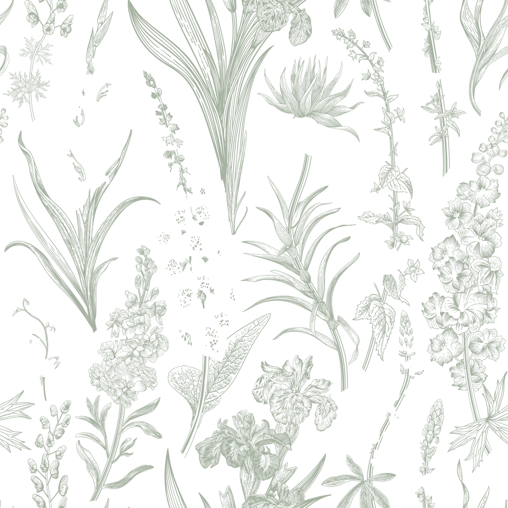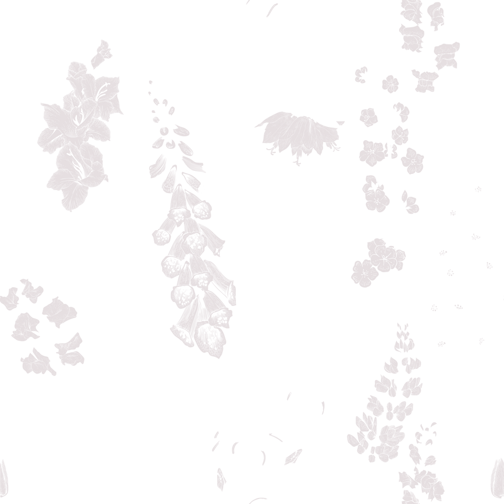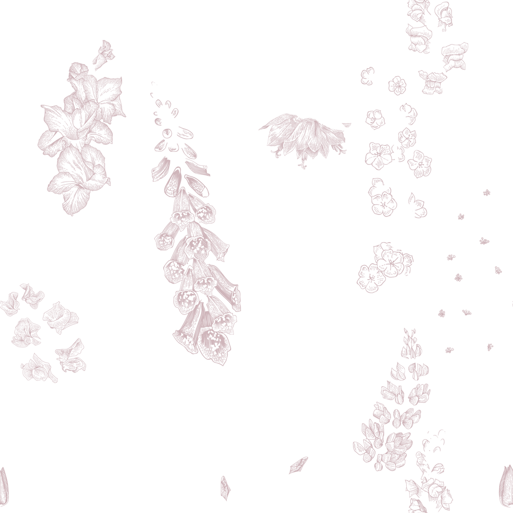 Esther Wallpaper: Embrace the beauty of spring with Esther. Featuring intricate Victorian-inspired illustrations of delicate pink foxgloves and verdant green plants and leaves, set against a light pale pink background. Bring a touch of timeless elegance to your space with this stunning floral wallpaper.